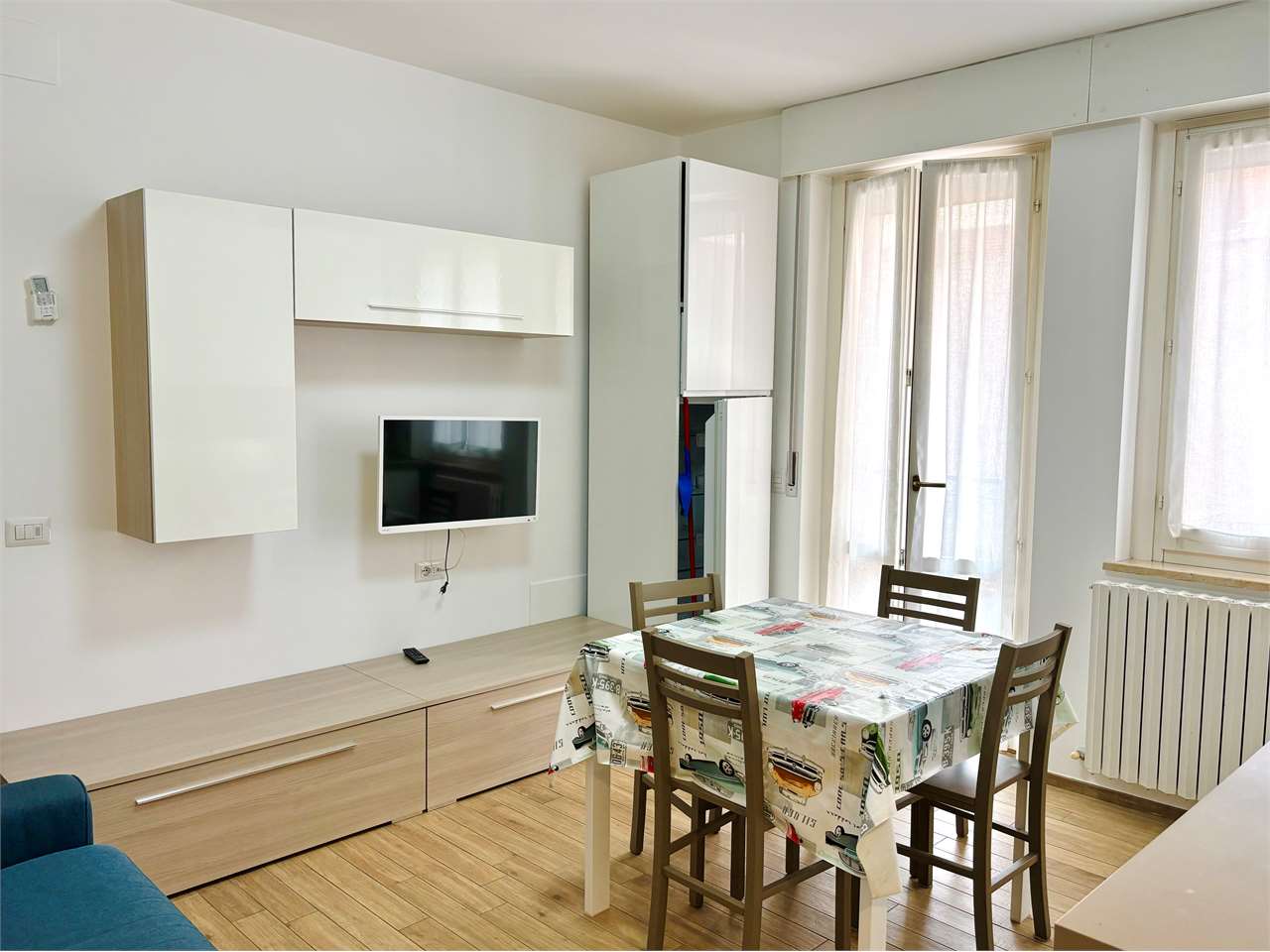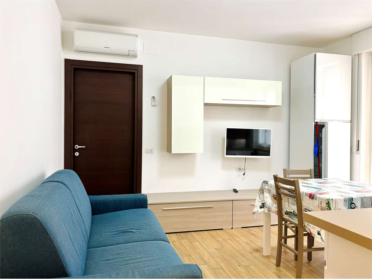 Porto Recanati, centro – ingresso, sala e cucina open space con divano letto, camera da letto matrimoniale e bagno con doccia e lavatrice, balcone con doppio accesso. Ristrutturato, aria condizionata, arredo nuovo. Piano terra, senza barriere architettoniche. Perfetta posizione, a 10 m dal Corso, quindi vicina a tutti i servizi del centro. Adatto per max. 2 persone. Contratto transitorio per 18 mesi. Referenze lavorative.