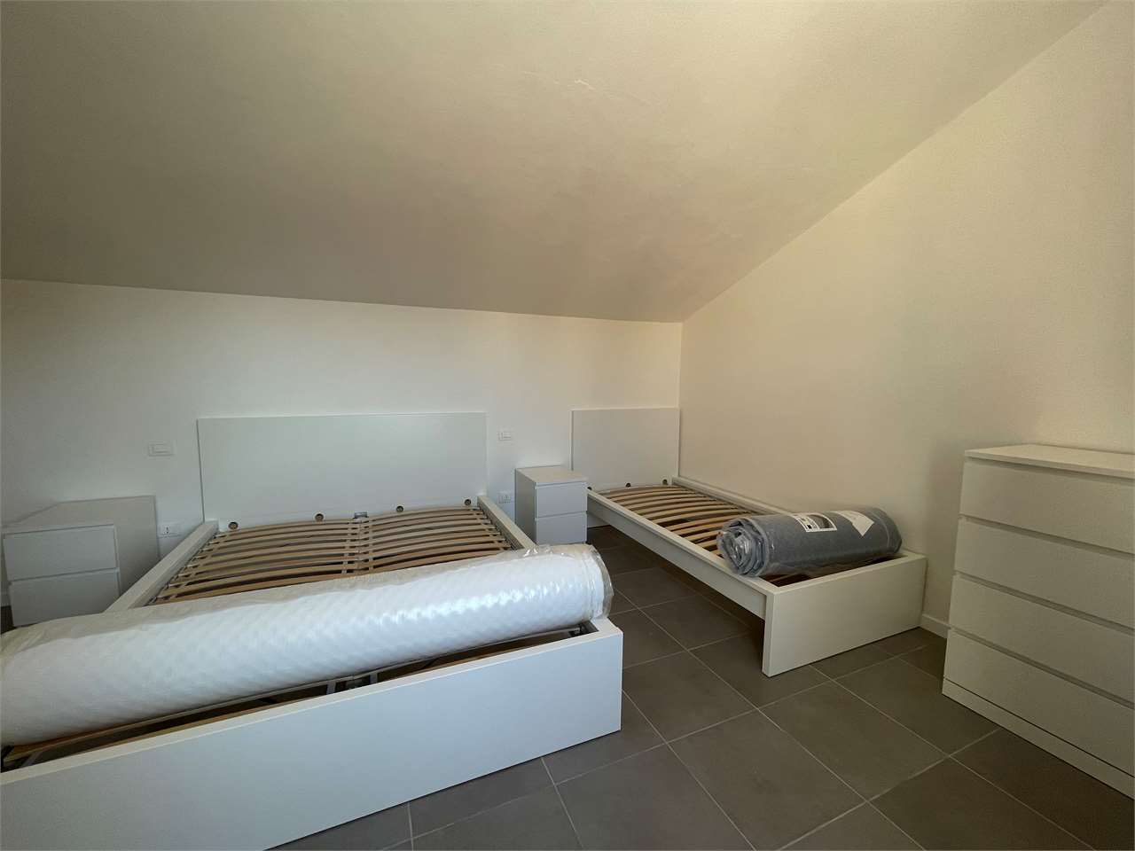 Porto Recanati – proponiamo in affitto per l’inverno, da ottobre a maggio, mansarda con sala grande open space con divano letto due posti e angolo cottura fornito anche di lavastoviglie, terrazzo ampio dove poter mangiare, camera matrimoniale dove è stato possibile aggiungere un ulteriore letto grazie all’ampia metratura e bagno con doccia e finestra; tutto l’appartamento è completamente nuovo, mai stato abitato, ristrutturato in toto. Si trova vicino al centro, ai servizi principali raggiungibili a piedi e nei pressi di tutti i più grandi e ben forniti supermercati del paese. A 3 min dall’autostrada, uscita Porto Recanati – Loreto e a pochi metri dal mare. Il comodo sottopassaggio che affianca questa soluzione permette di muoversi a piedi in piena facilità.